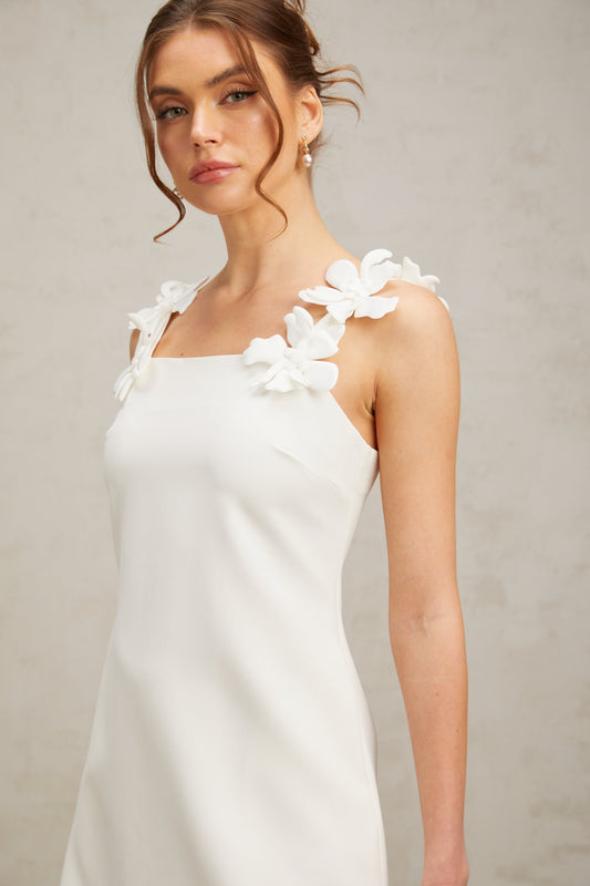 Clémence white faux-flower mini dress