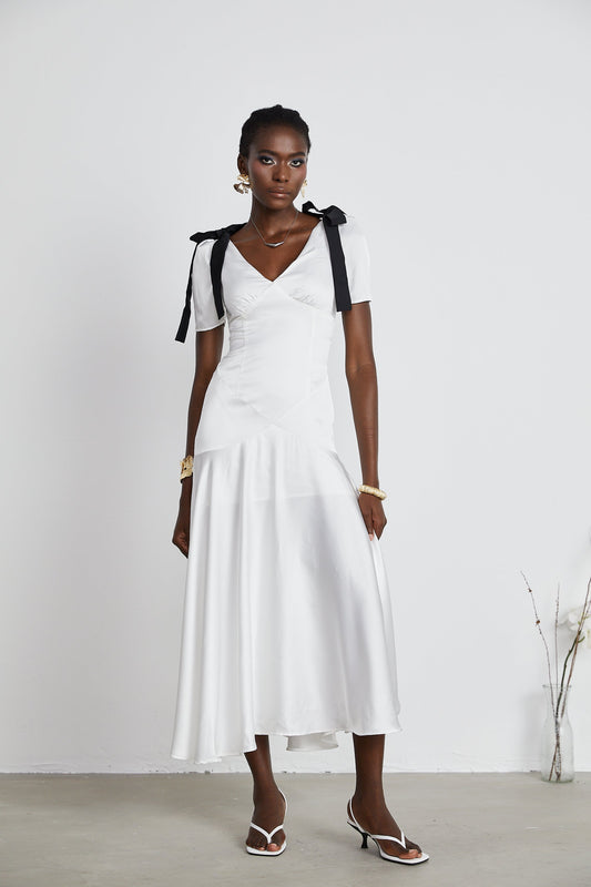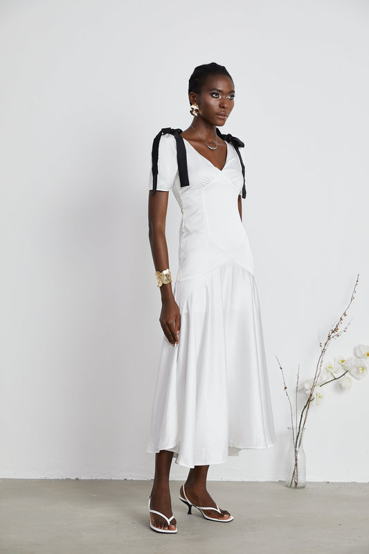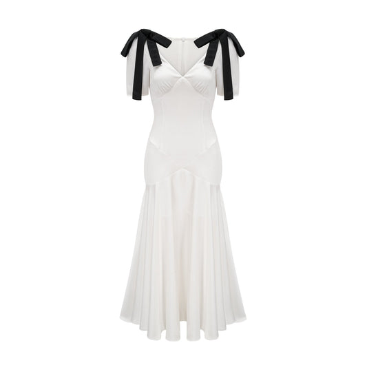 Cyrielle ribbon-detail puff-sleeve maxi dress