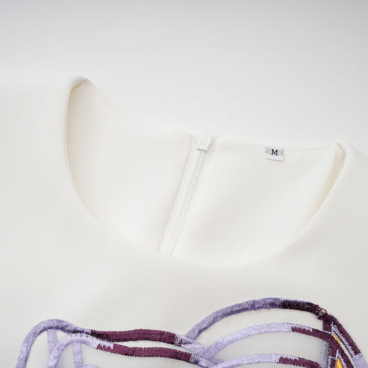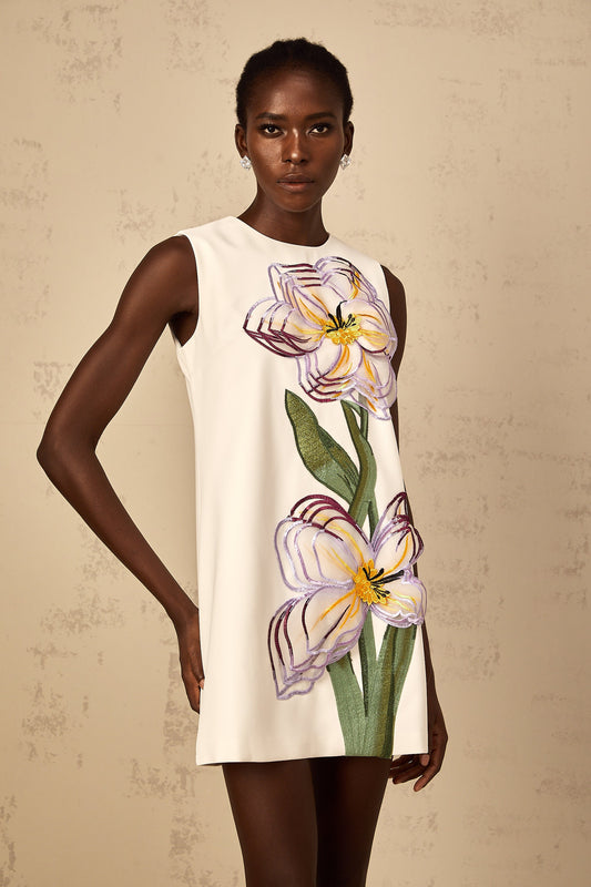 Irène White Sequin Floral Embroidered Mini Dress