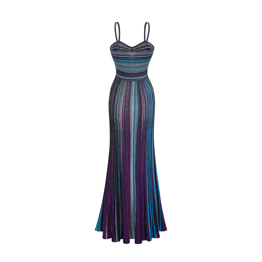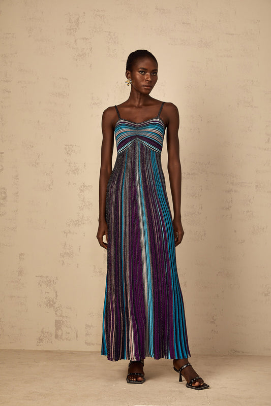 Bruyère Purple Sequin Striped Knit Maxi Dress