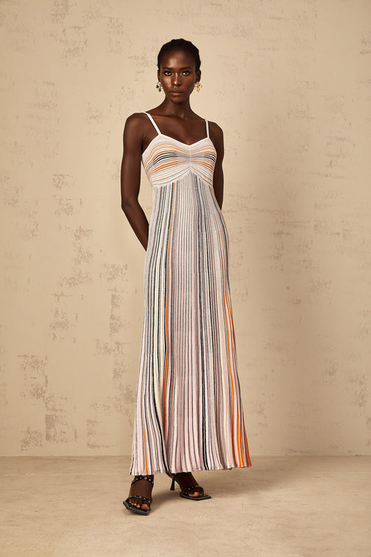 Bruyère Neutral Sequin Striped Knit Maxi Dress