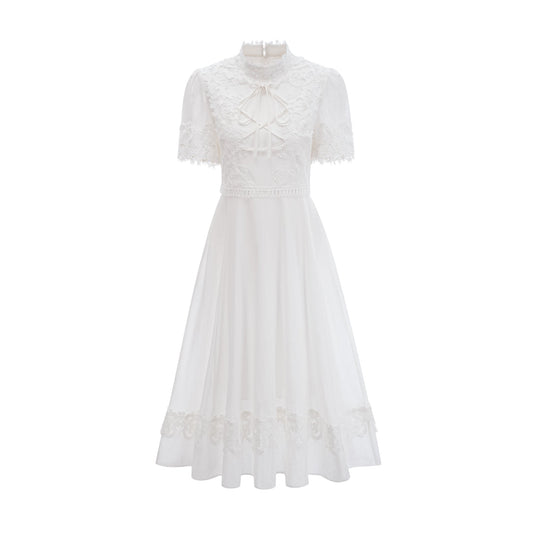 Patricia white floral-lace midi dress