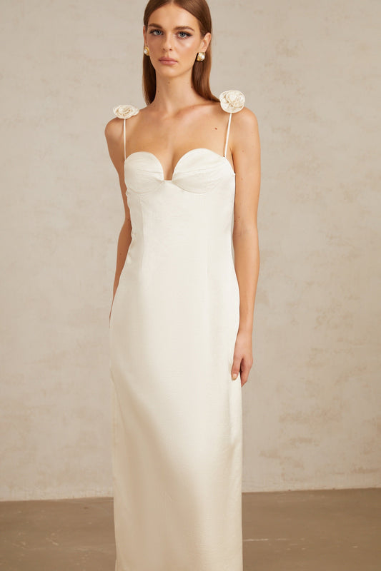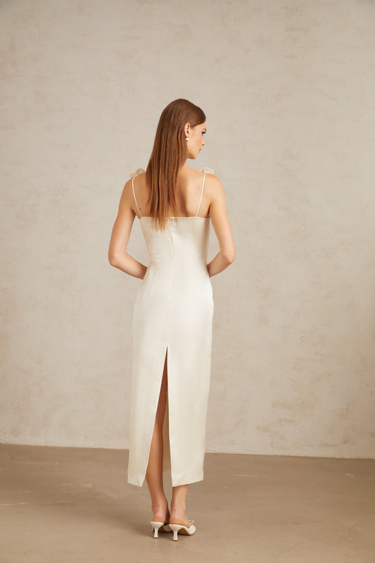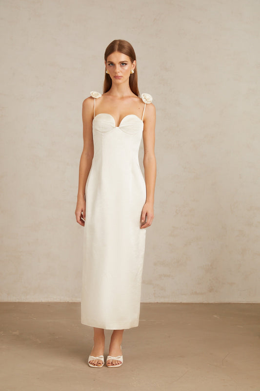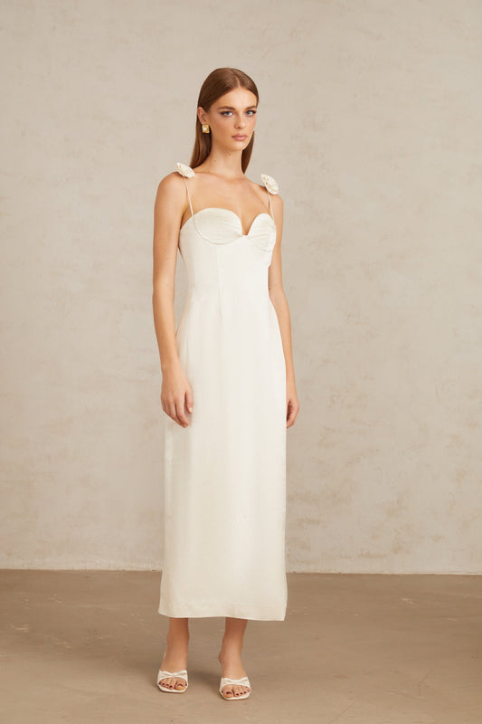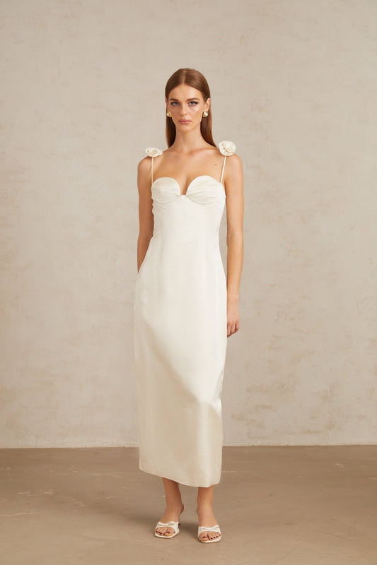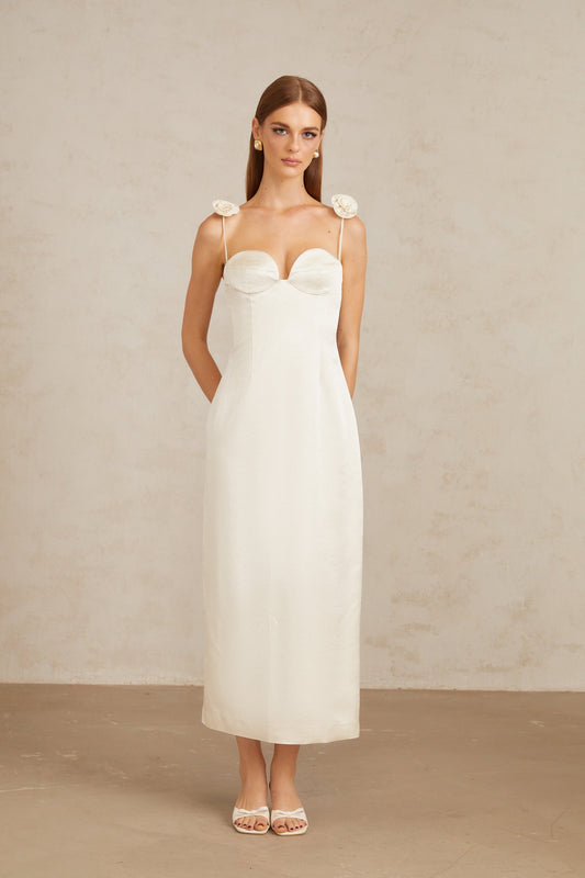 Ida White Floral Satin Midi Dress
