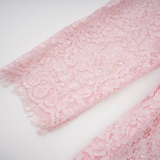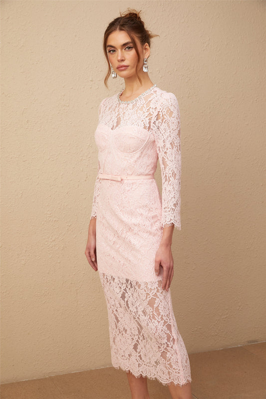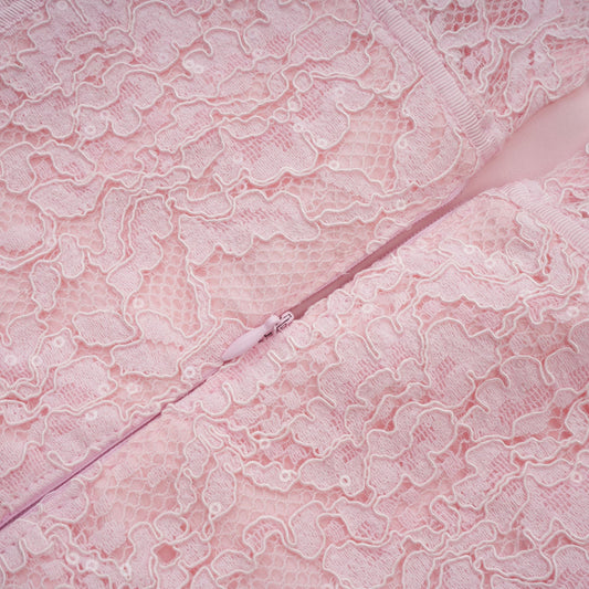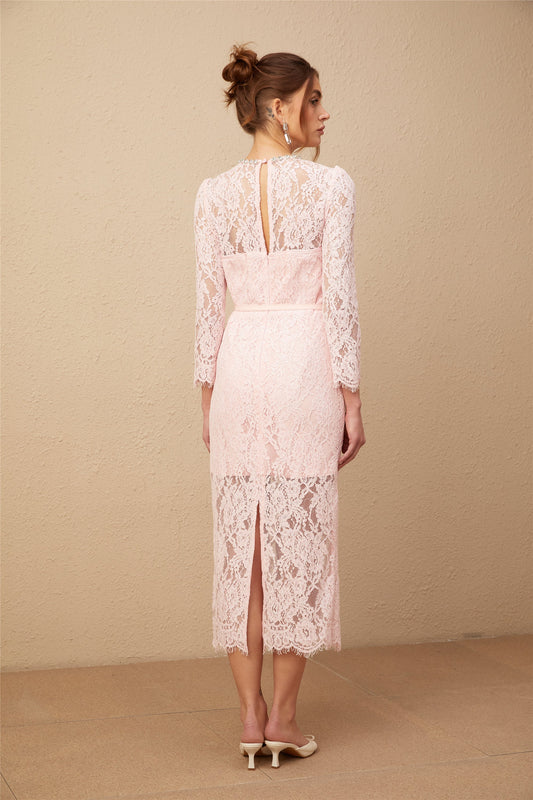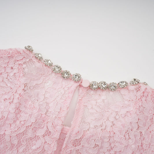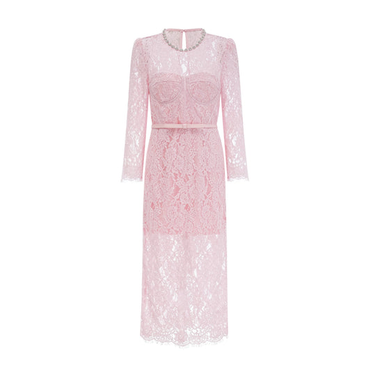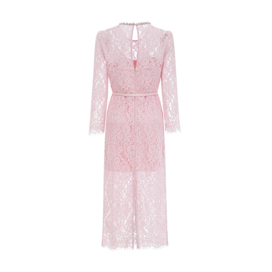 Elisabetta pink embellished floral-embroidered lace midi dress