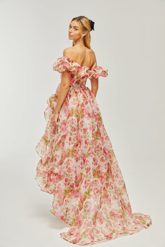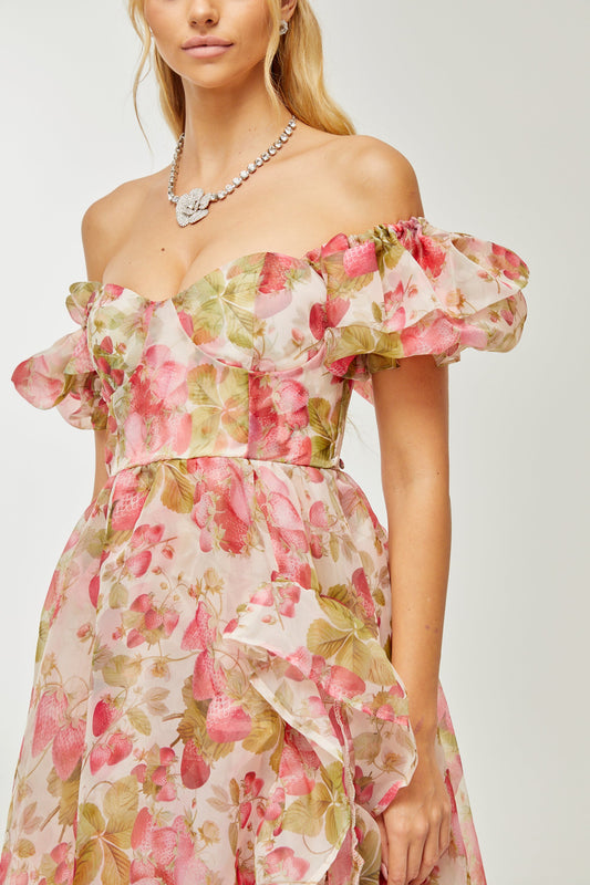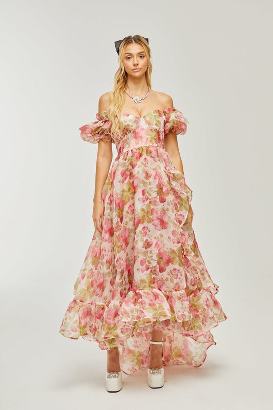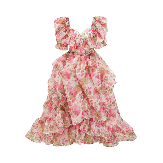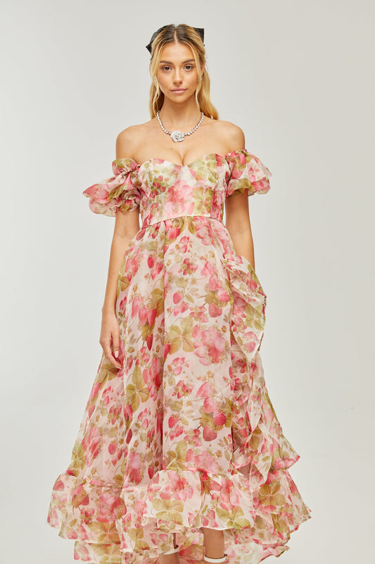 Geneviève fruit-print ruffled maxi dress