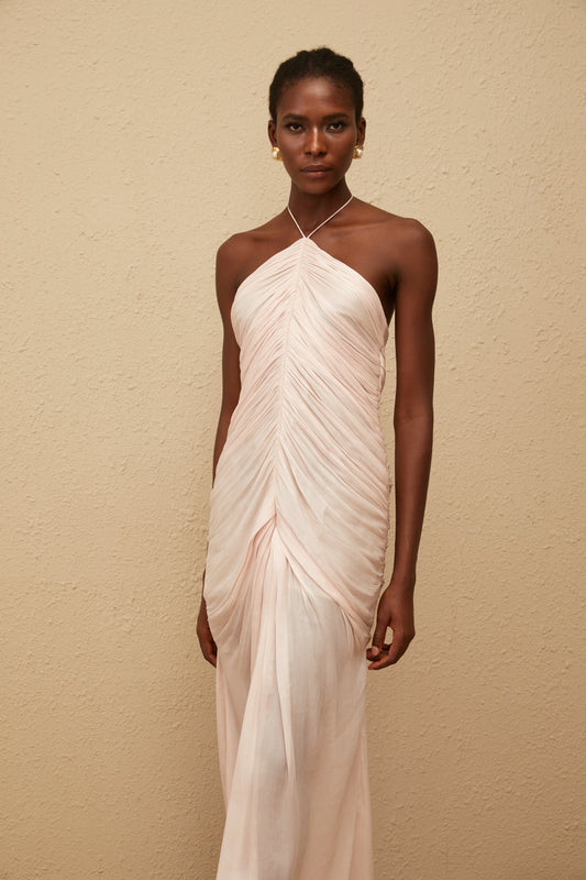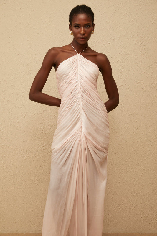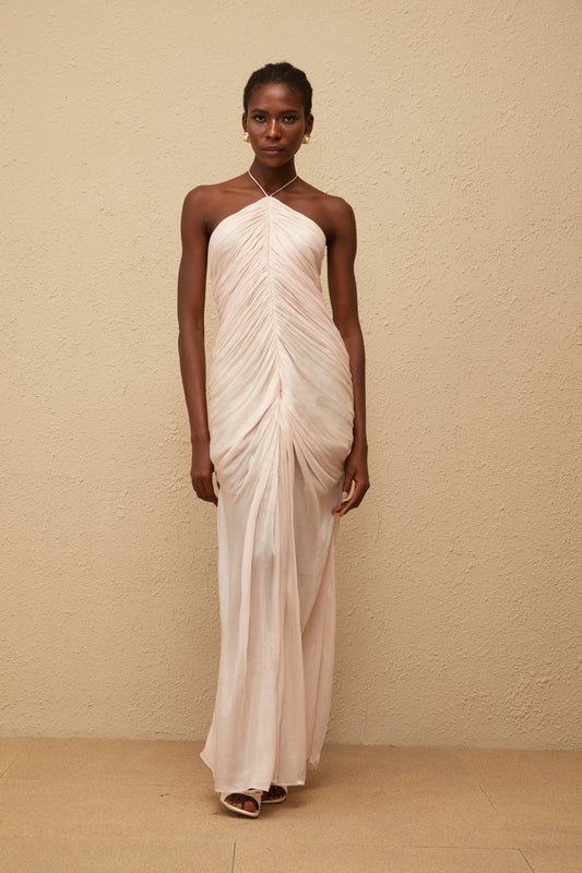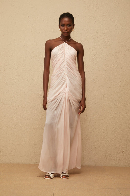 Ivresse Pink Halterneck Ruched Maxi Dress