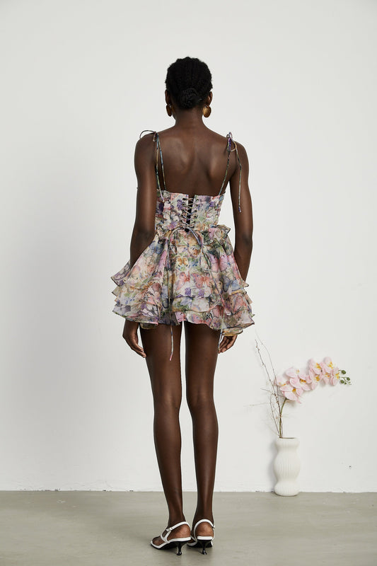 Juliette floral print pleated mini dress