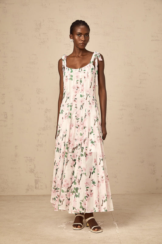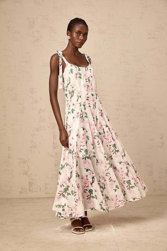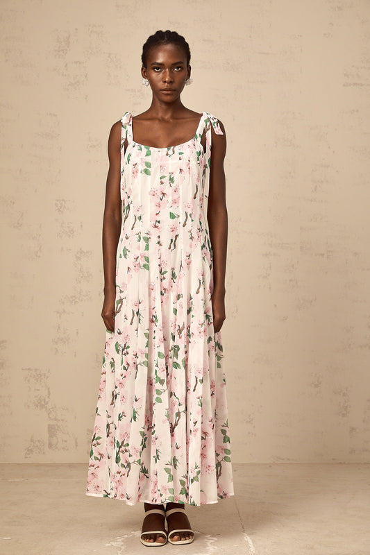 Noèle pink floral-print tied-strap maxi dress