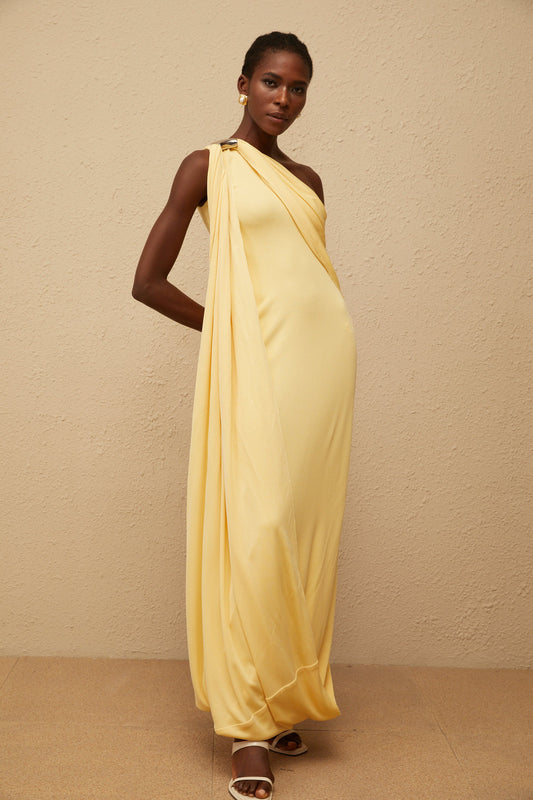 Garance Yellow Draped Asymmetrical Maxi Dress