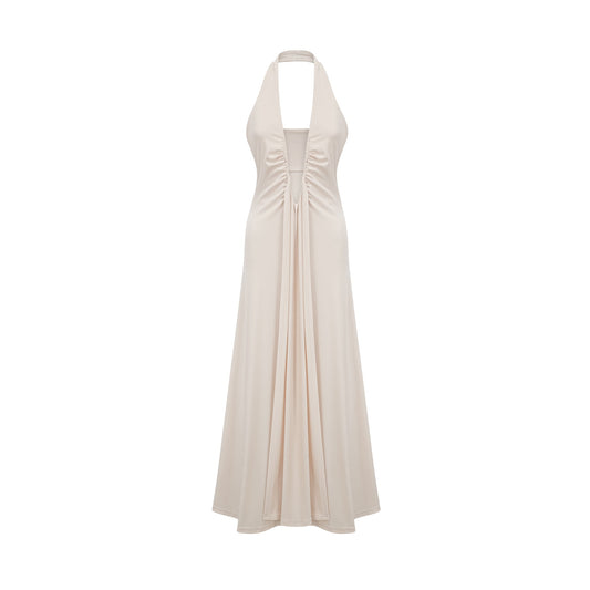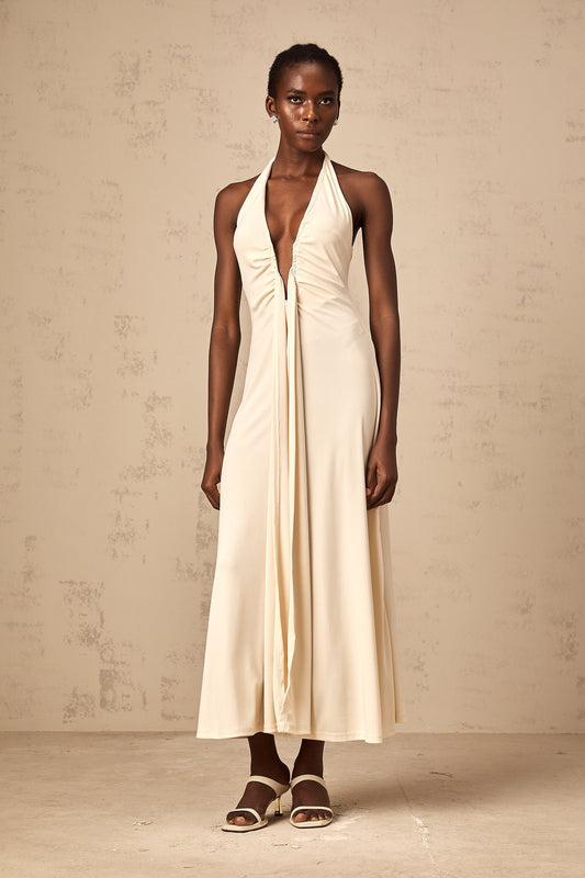 Géraldine white deep V-neck draped maxi dress
