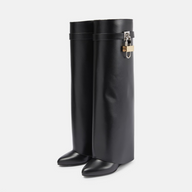 Handcrafted in Italy with fine leathers, these boots embody the essence of contemporary luxury. The sculptural design, enhanced by the iconic metal lock, transforms footwear into a true style jewel. Available in refined shades of white, black, and beige, they express three different facets of femininity: the luminous purity of white, the bold elegance of black, and the sophisticated naturalness of beige. Every detail is designed to give character and uniqueness, making these boots an everlasting symbol of elegance and modernity.