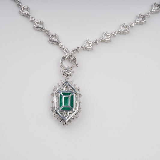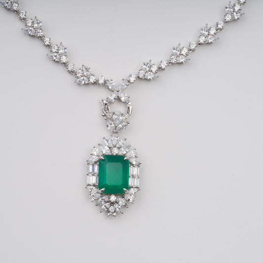 Anneli Green Emerald Cut Gemstone Pendant Sterling Silver Necklace