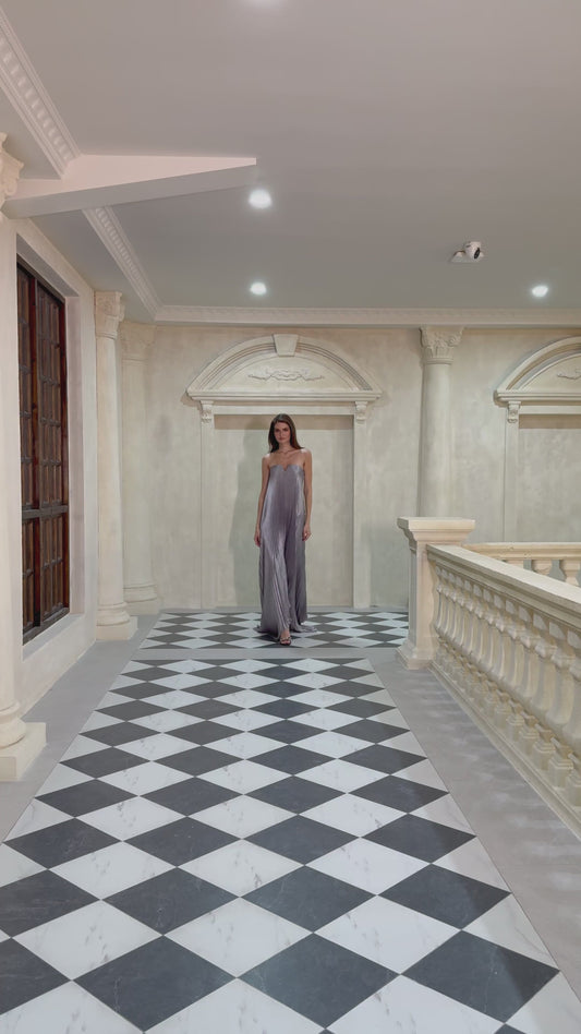 Satiné Purple Fully-pleated Maxi Dress