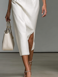 Style with strappy sandals or low heels and a small handbag for a refined daytime or evening look.