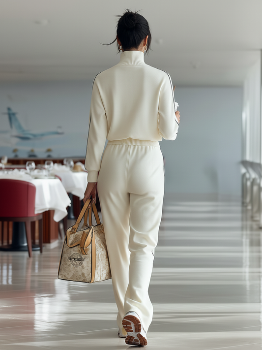 Women's Casual Ribbed Black Trim Zipper Half Turtleneck Sports Set MDA2436I5Y