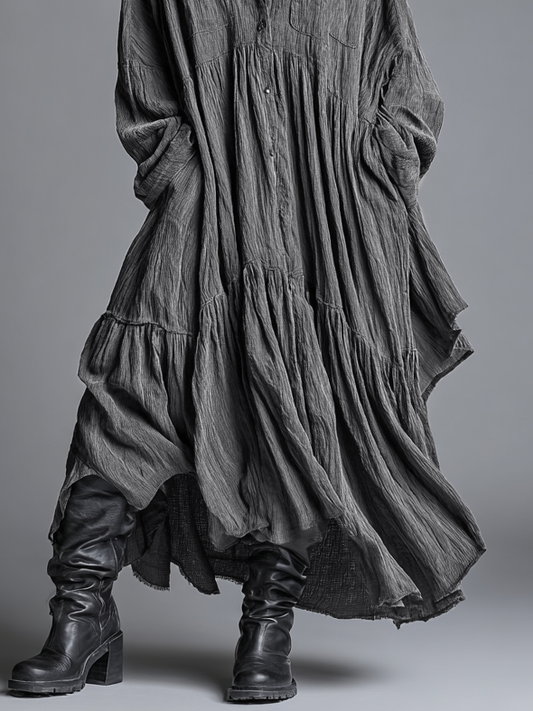 Women's Cotton And Linen Blend Loose Washed Shirt Maxi Dress