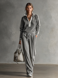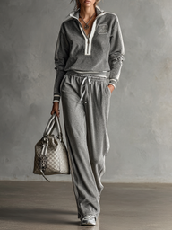 Elevate your casual wardrobe with this stylish sweatshirt and sweatpants set. Crafted from a soft cotton blend, this set features a zipper stand collar and beautiful embroidered details, complemented by chic white trim for a fresh and trendy look.