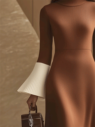 Women's Elegant Turtleneck Contrast Color Knitted Maxi Dress With Flared Sleeves
