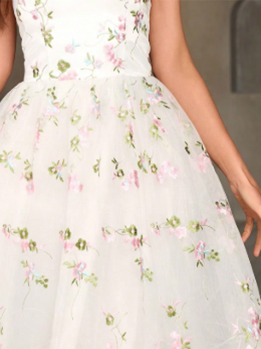 The Women's Embroidered Suspender Waist A-line Midi Dress combines exquisite detailing with a flattering silhouette and adjustable features, offering a versatile and stylish option for a variety of occasions.