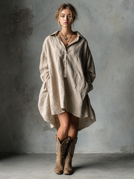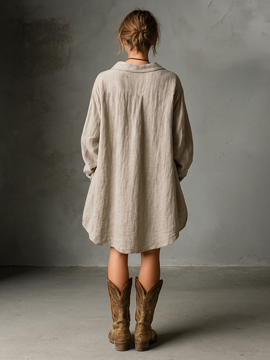 Women's Fashion Loose Cotton and Linen Button Lapel Mini Dress