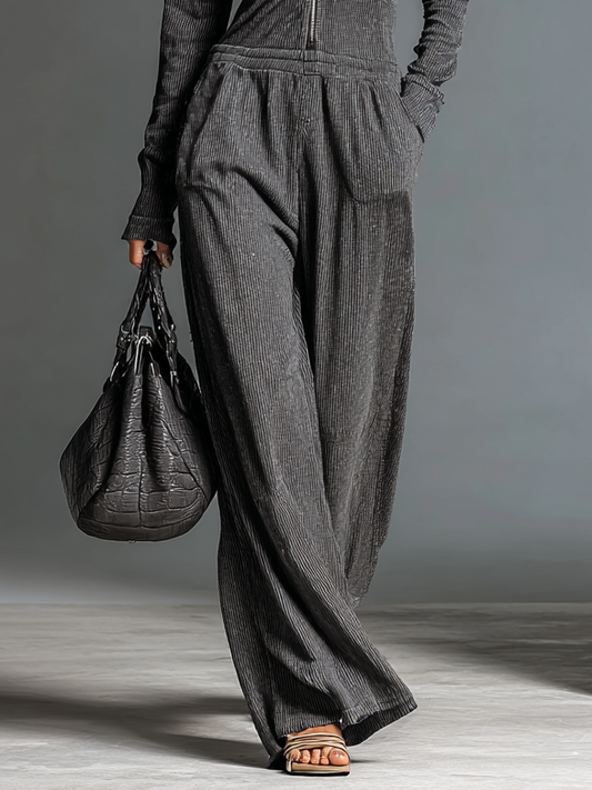 Elevate your casual look with the Women's Fashion Ribbed Zipper Hooded Jumpsuit. This stylish jumpsuit features a ribbed texture, a functional zipper, and a cozy hood, making it perfect for a trendy yet comfortable outfit.