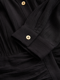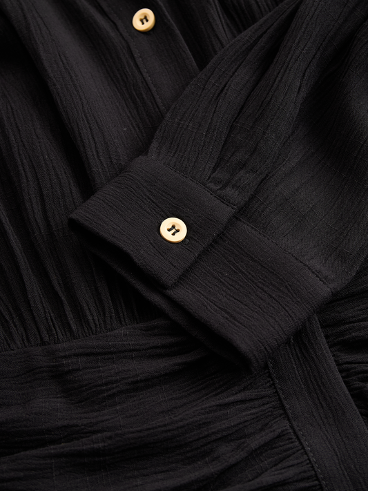 Women's Imitation Cotton And Linen Pleated Lapel Single-breasted Long-sleeved Maxi Dress MDA1768I7Y