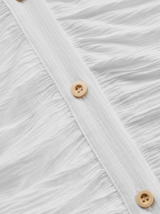 A graceful maxi dress crafted from soft imitation cotton and linen fabric, featuring elegant pleats, a classic lapel collar, and a single-breasted front. This dress blends breezy comfort with timeless, minimalist style for any occasion.