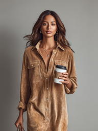 A comfortable and stylish midi dress crafted from soft corduroy, featuring a loose silhouette, double chest pockets, and a classic single-breasted front. Perfect for everyday wear with a touch of retro charm.