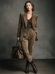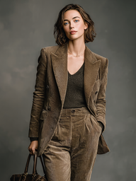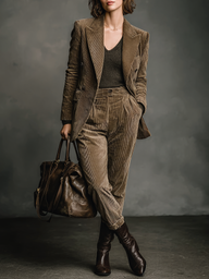 Add vintage-inspired sophistication to your wardrobe with this corduroy set. The loose-fit suit jacket features a peak lapel collar, paired with matching straight-leg pants for a stylish and comfortable look.