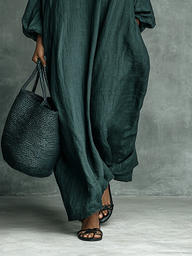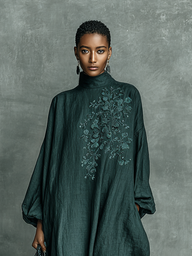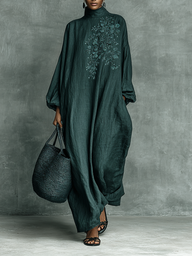Enjoy effortless sophistication with the Women's Loose Cotton And Linen Blend Shoulder Embroidery Half-High Collar Long-sleeved Maxi Dress. This elegant maxi dress features a comfortable loose fit, a stylish half-high collar, and exquisite shoulder embroidery, making it perfect for any occasion.