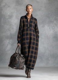 Stay effortlessly chic and comfortable in this loose-fit knitted maxi dress, featuring a bold plaid pattern and a practical zipper neck design. The cozy knit fabric makes it an ideal choice for cooler days, while the relaxed silhouette ensures free movement and laid-back style for work or everyday wear.