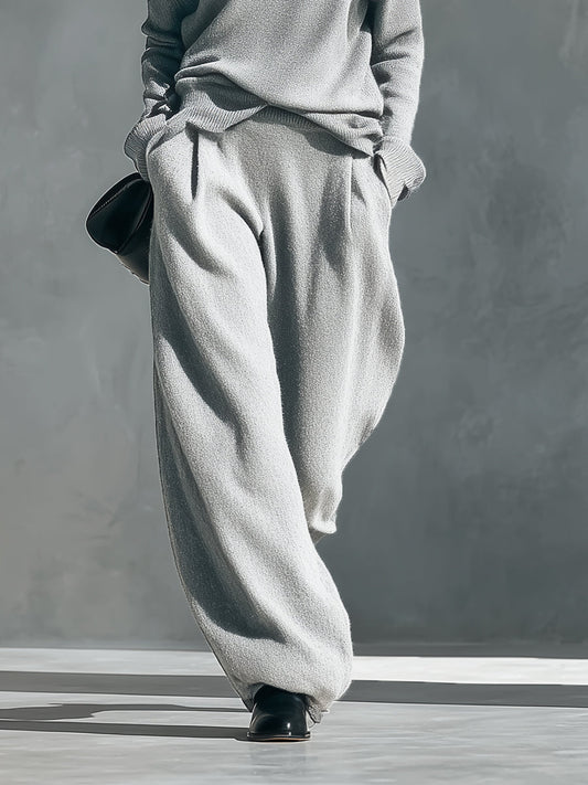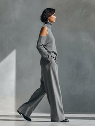 This knit-blend set is soft and stylish with a loose, easy fit. The shoulder cut-out adds a modern touch to a cozy look.