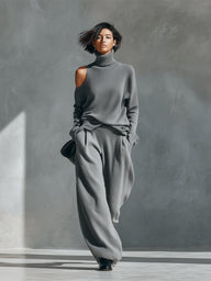 Women's One-shoulder Cut-out Modern Knit-Blend Set