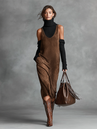 A timeless midi dress designed in soft, retro-inspired suede, featuring a classic U-neck and sleeveless tank silhouette. Its simple yet elegant style makes it perfect for effortless layering and versatile everyday wear, while the comfortable fit ensures both style and ease.