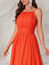 The Women's Solid Color Adjustable Suspender Waist Maxi Dress combines effortless elegance with functional design, delivering a flattering and comfortable choice that suits a variety of casual and semi-formal occasions.