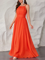 Women's Solid Color Adjustable Suspender Waist Maxi Dress