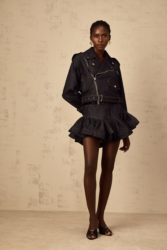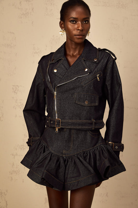 Florence Indigo Blue Contrast Stitching Denim Jacket
