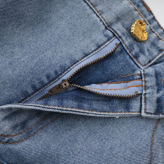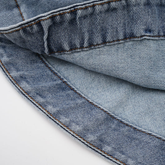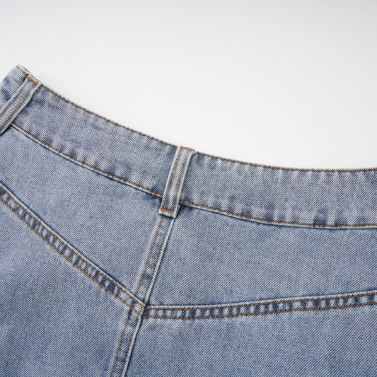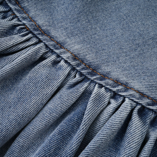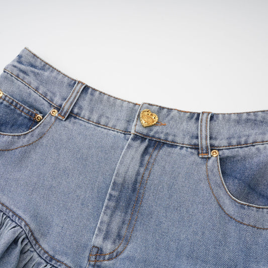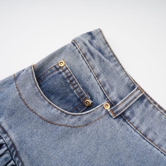 Florence Ruffled Denim Mini Skirt in Light Blue