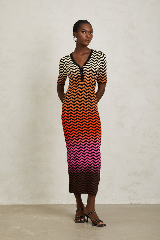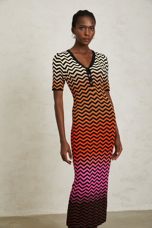 Charitina Brown Gradient Zigzag Knit Midi Dress