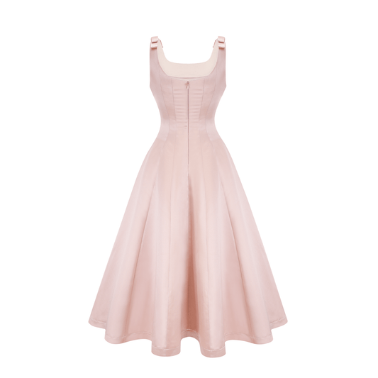Coralie pink bowknot pleated midi dress
