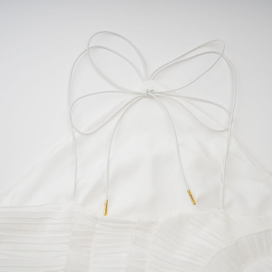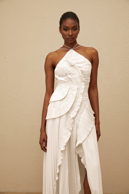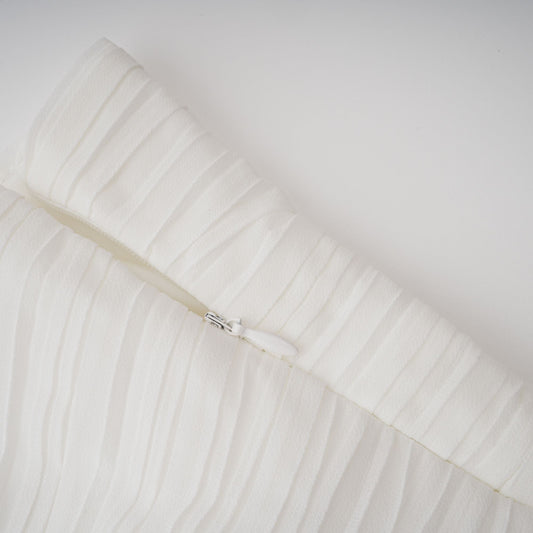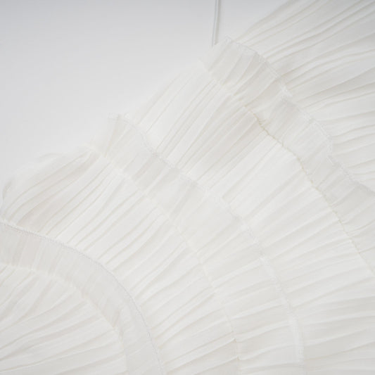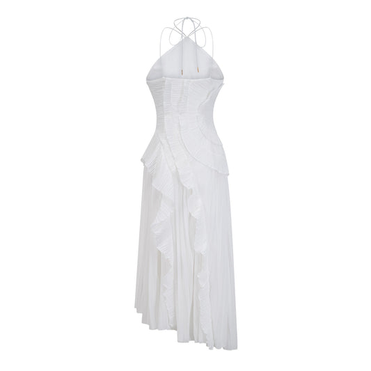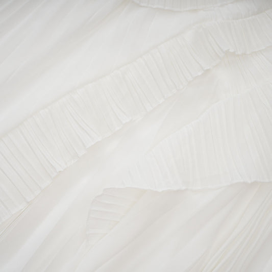 Doux White Ruffled Trim Pleated Midi Dress