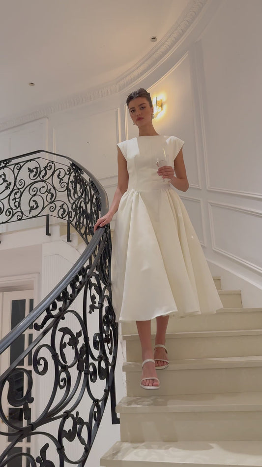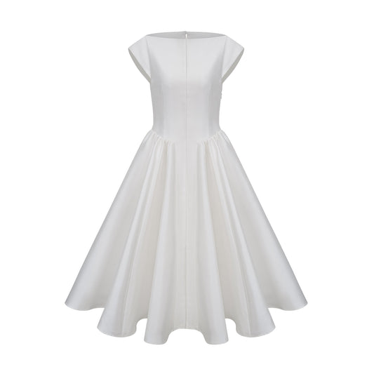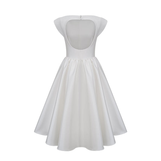 Amandine white open-back cap-sleeve midi dress