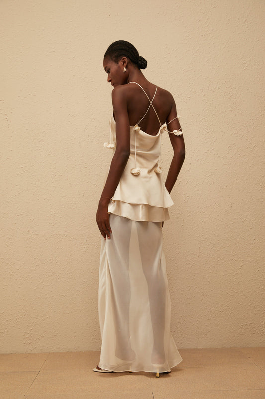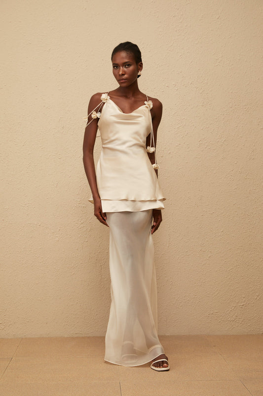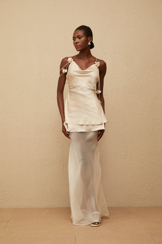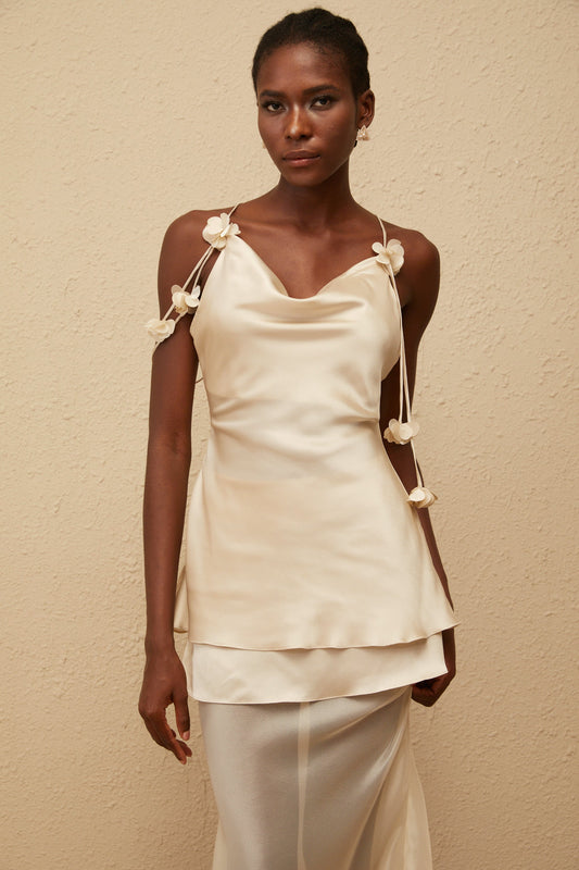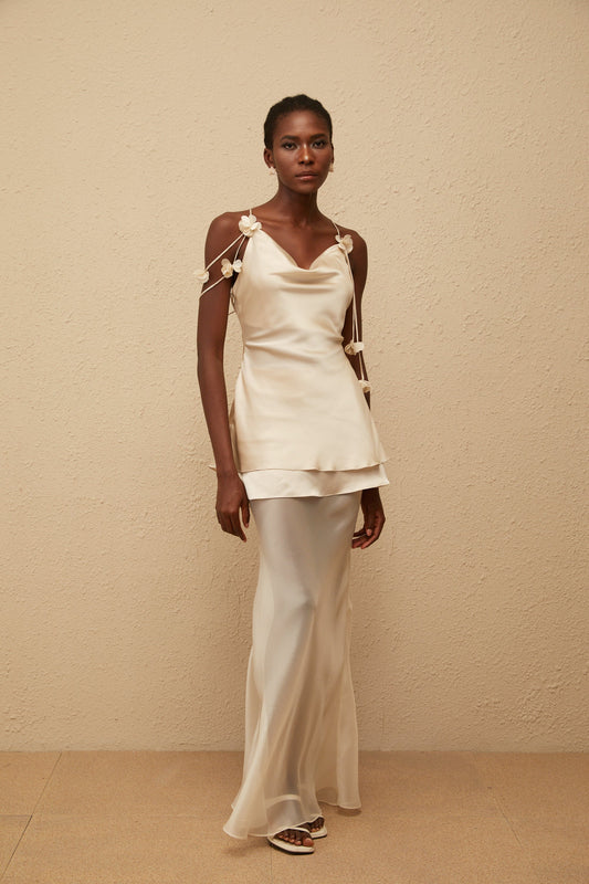 Aikaterini Neutral 3D Petal Satin Matching Set