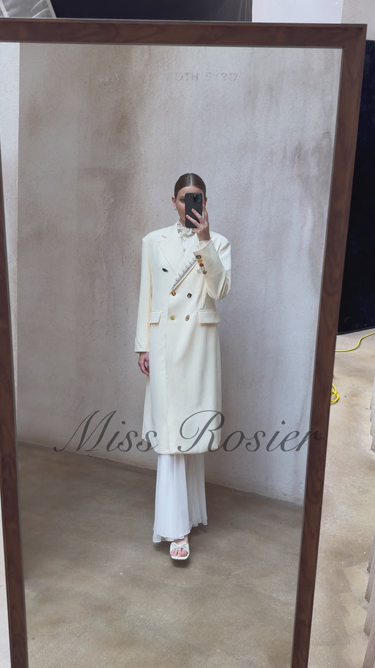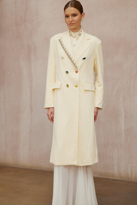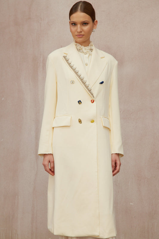 Alexa White Embroidered Double-Breasted Overcoat