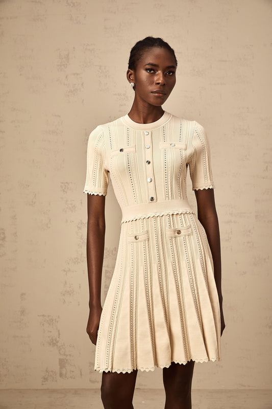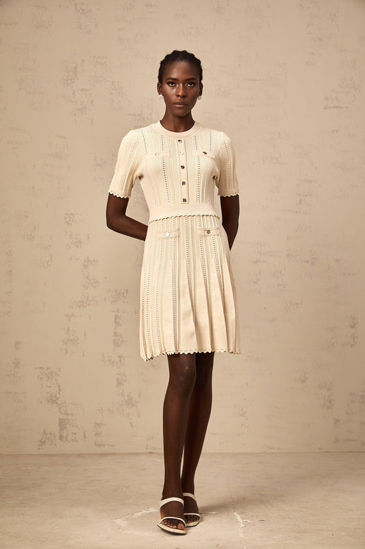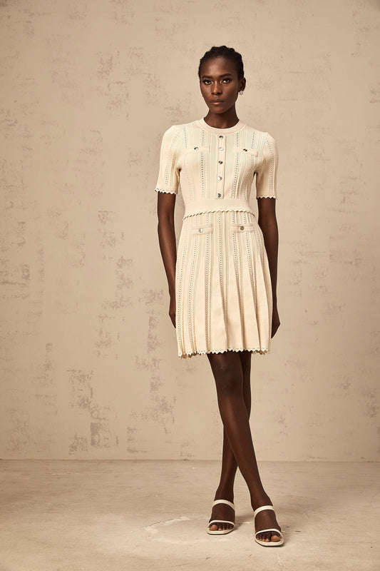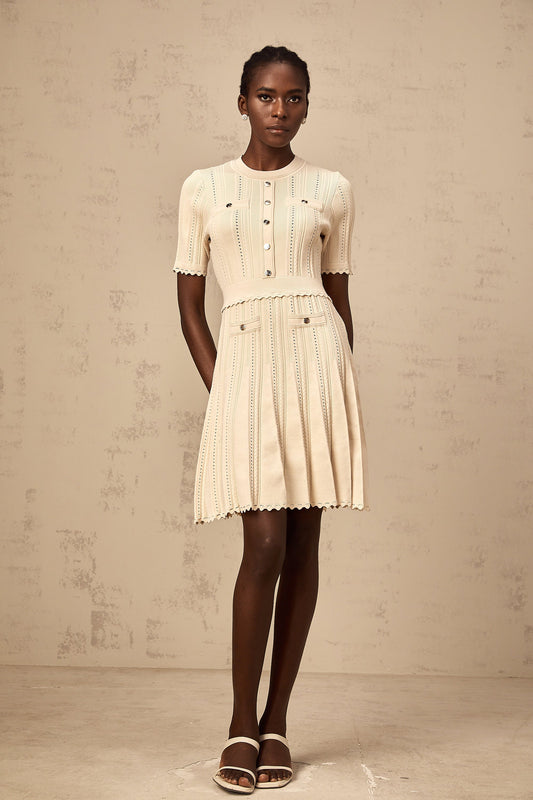 Amélie neutrals pointelle-trim pleated knit mini dress (US Only)