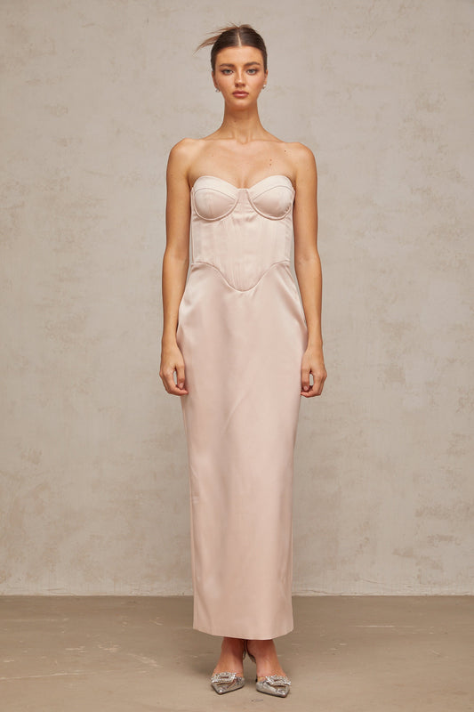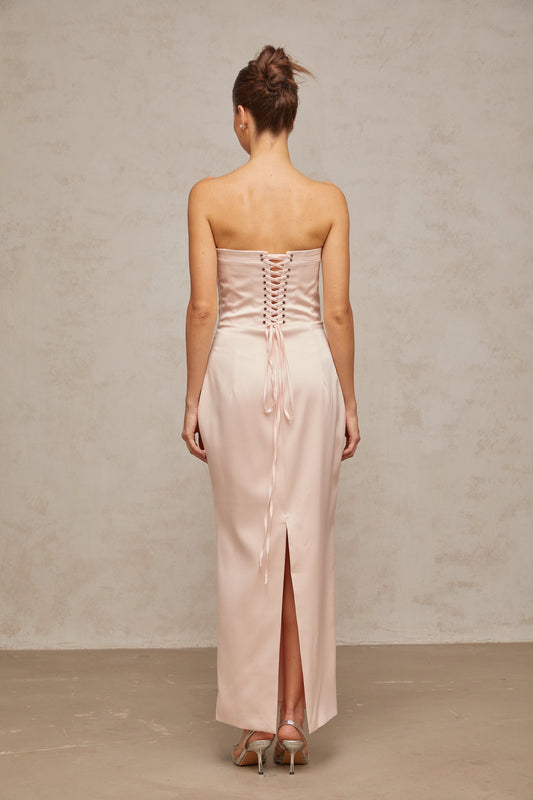 Robe longue en satin rose à épaules dénudées Élodie (États-Unis unique