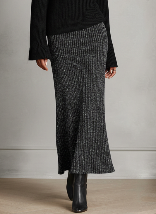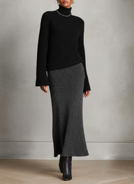Elevate your seasonal wardrobe with this sophisticated knit set, featuring a classic black turtleneck sweater paired with a versatile gray knit skirt. Soft, cozy, and effortlessly stylish, this two-piece ensemble is perfect for creating polished looks at work, for casual gatherings, or everyday comfort during the cooler seasons.