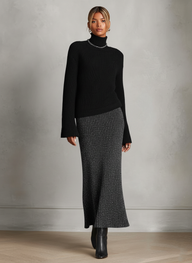 Women’s Black Turtleneck Sweater And Gray Knit Skirt Set