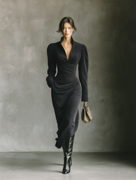 Pair with tall black boots and a classic handbag for a chic day-to-evening look. Add bold lipstick and simple earrings for polish.