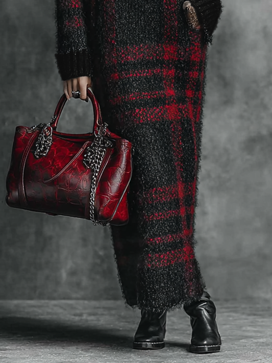 Turn heads this season with this fashionable maxi dress, featuring a striking red and black plaid pattern. Crafted from soft knit fabric, it offers a relaxed, loose fit that drapes effortlessly, while the high collar adds a touch of modern sophistication and warmth. This statement piece is perfect for easy-going style, comfort, and flair all winter long.